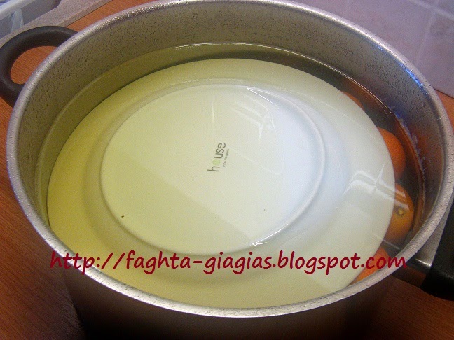 | Αλλάζουμε νερό και επαναλαμβάνουμε την διαδικασία, άλλη μια φορά. Αφού τα βράσουμε την τρίτη φορά και τα σουρώσουμε, τα ξεπλένουμε με κρύο νερό βρύσης και δοκιμάζουμε λίγη φλούδα, για να δούμε αν έχουν ξεπικρίσει. Αν μας φαίνονται πικρά, τα βάζουμε σ᾿ ένα μπολ με νερό και τ᾿ αφήνουμε για 2 - 3 ώρες, αλλάζοντας 2 - 3 νερά, μέχρι να ξεπικρίσουν εντελώς (δοκιμάζουμε). | |